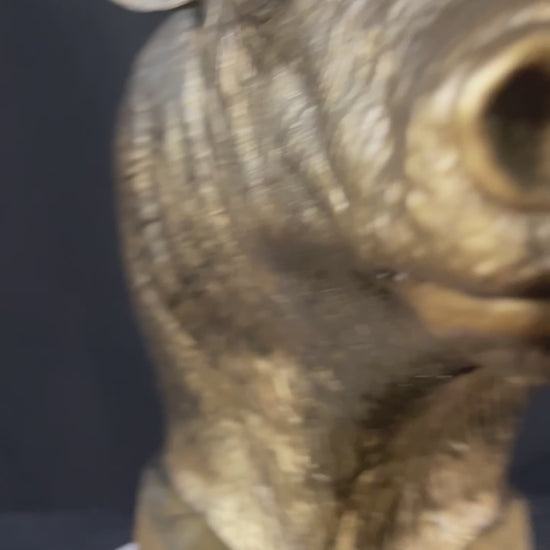 The smooth yet rugged surface features a rich bronze-like finish, creating a sense of elegance and durability. The refined details in the eyes and the fur emphasize its realism and artistic mastery, making it an extraordinary piece of art.